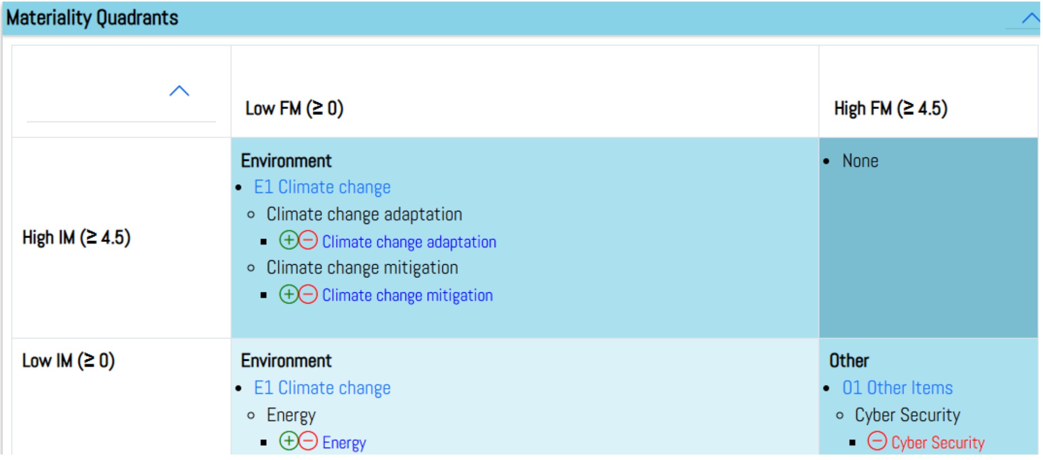 The ValuechainScore™ DMA tool is gaining traction across multiple sectors, offering industry-specific insights. Utilizing standard sector DMAs can enhance recognition, efficiency, and consistency (available upon request). Survey results are supported by color-coded Materiality Quadrants, providing quick insights and identifying contradictions.